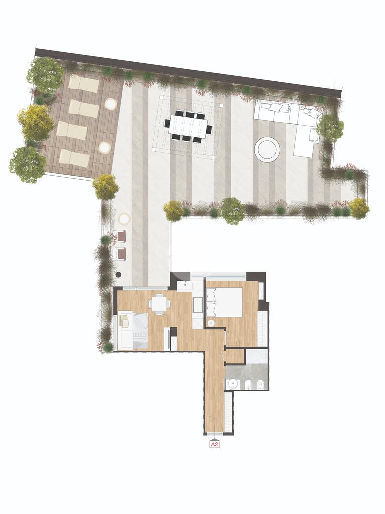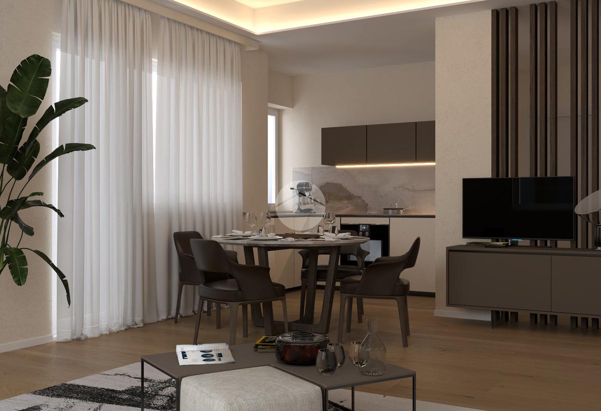 L’appartamento si apre su un comodo ingresso che introduce alla zona giorno, composta da un luminoso soggiorno con angolo cottura, progettato per garantire funzionalità e comfor. La camera da letto è ben proporzionata, ideale per accogliere una zona notte elegante e rilassante. Il bagno sarà, anch'esso, realizzato con materiali di qualità, dotato di sanitari moderni e finiture curate nei dettagli. Completa la distribuzione interna un ripostiglio, pensato per ottimizzare al meglio gli spazi e rispondere alle esigenze quotidiane di praticità.