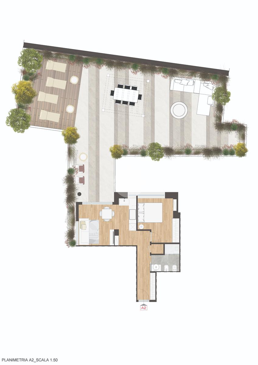 A rendere questa proposta ancora più interessante è la presenza di un ampio giardino pavimentato di circa 140 mq, anch’esso oggetto di completa ristrutturazione, che rappresenta un vero e proprio prolungamento della casa.