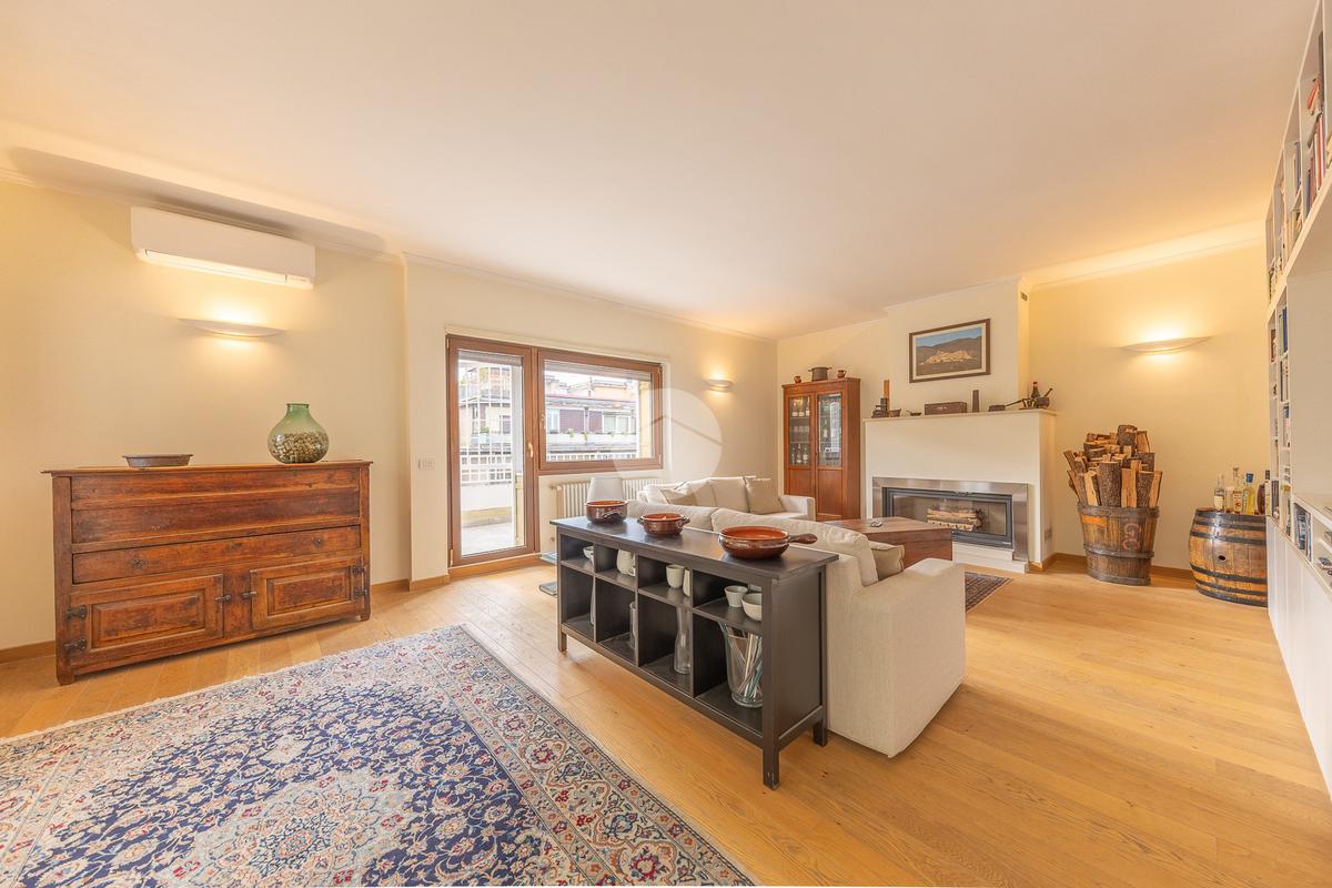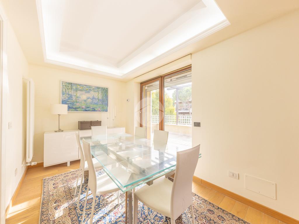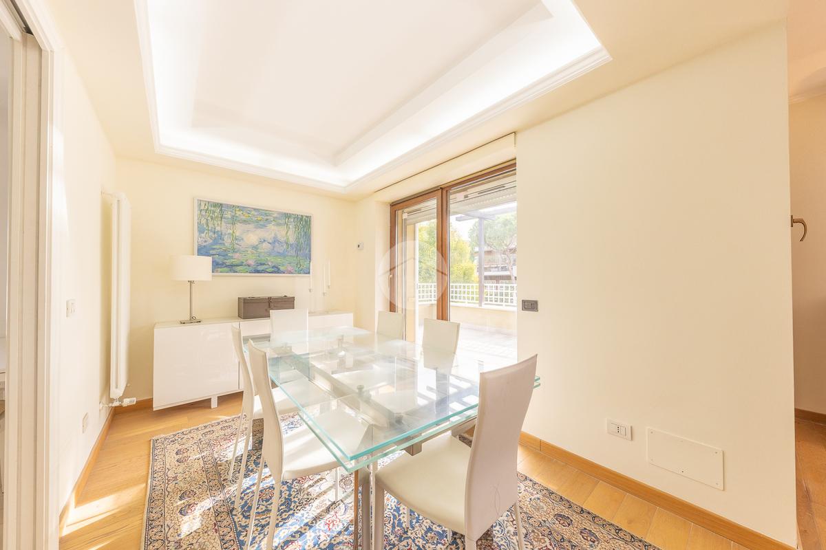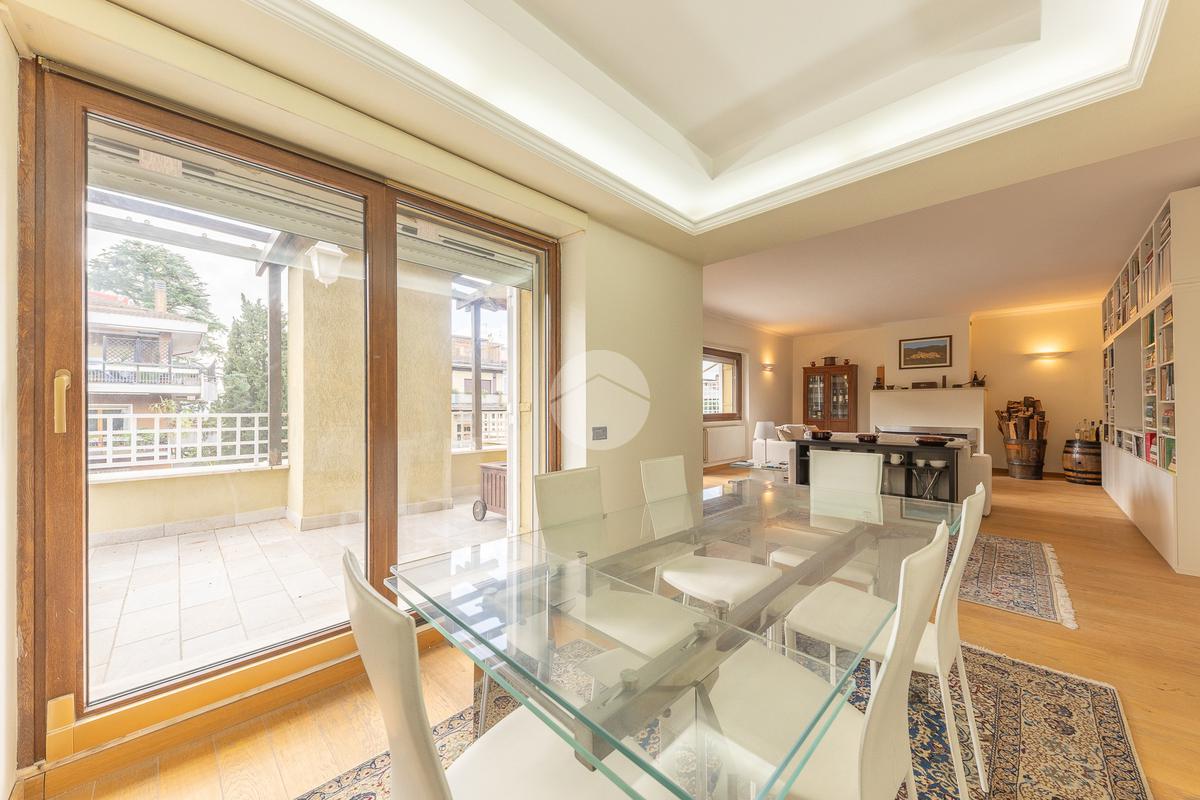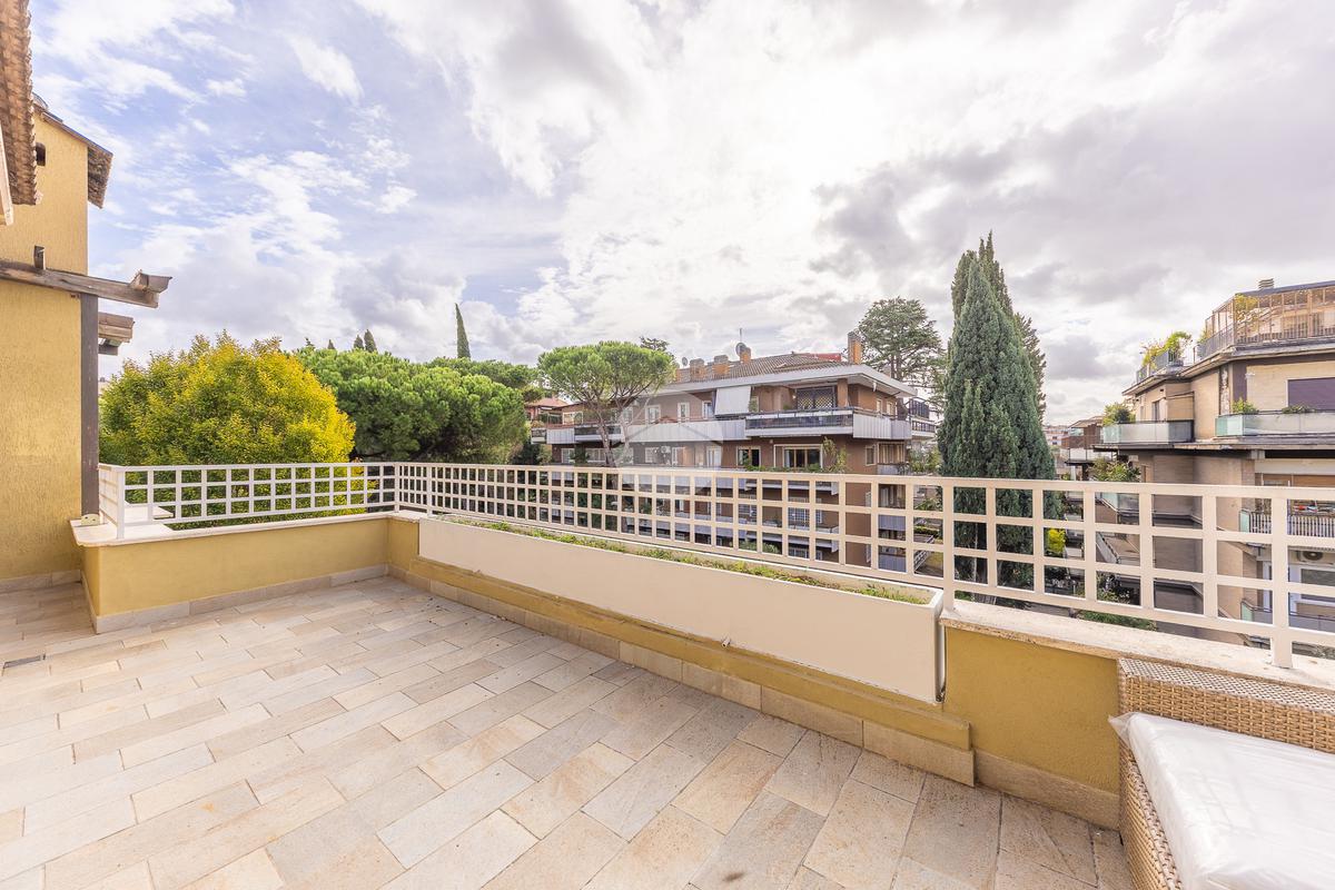 CORTINA D'AMPEZZO - In una delle zone più eleganti e tranquille di Roma Nord, precisamente su Viale Cortina d’Ampezzo, proponiamo in vendita un attico completamente ristrutturato, situato all’interno di una palazzina recentemente rinnovata grazie ai lavori di riqualificazione effettuati con Eco Bonus 110%. Lo stabile si presenta in condizioni impeccabili: sono stati realizzati interventi di efficientamento energetico come il cappotto termico, la nuova caldaia a condensazione, oltre all’installazione di infissi nuovi, che garantiscono un elevato comfort abitativo. L’appartamento si distingue per la sua luminosità e per gli spazi ampi e ben distribuiti. L’ingresso si apre su un salone doppio con camino che, insieme alla sala da pranzo, crea una zona giorno accogliente e perfetta. La cucina, separata e funzionale, è dotata di tutto lo spazio necessario per chi ama cucinare e vivere la casa. La zona notte è composta da tre camere da letto e due bagni, garantendo spazio alle famiglie numerose. Tutti gli ambienti si affacciano su una splendida terrazza perimetrale, ideale per godersi momenti di relax all’aperto e organizzare cene estive ammirando il panorama circostante. A completare la proprietà troviamo un comodo box auto di circa 32 mq e una cantina, perfetti per rispondere a ogni esigenza di spazio. L’attico rappresenta una soluzione ideale per chi desidera vivere in un contesto signorile, circondato dal verde e al tempo stesso vicino a tutti i principali servizi e collegamenti. Un’abitazione pronta da vivere, elegante e confortevole, nel cuore di una delle aree più ambite di Roma.