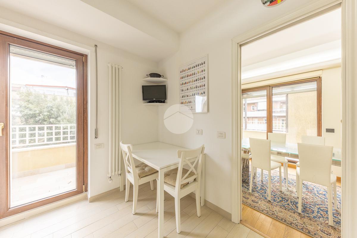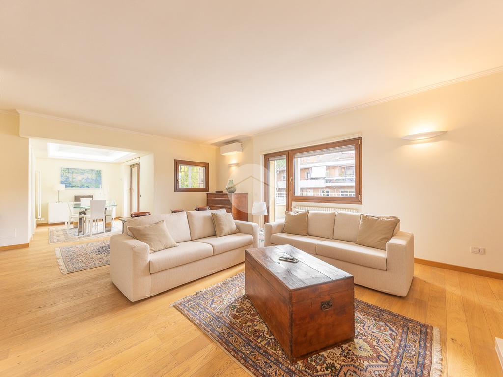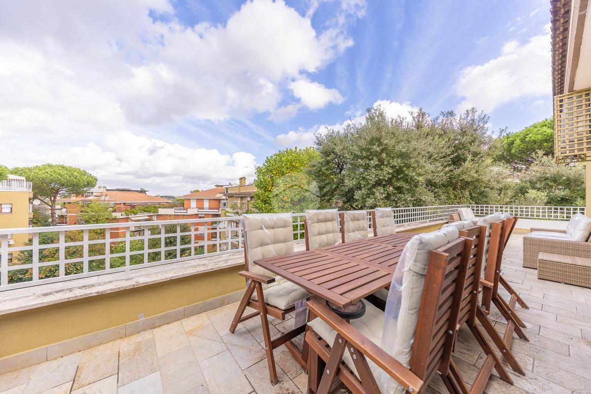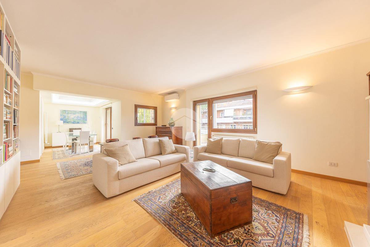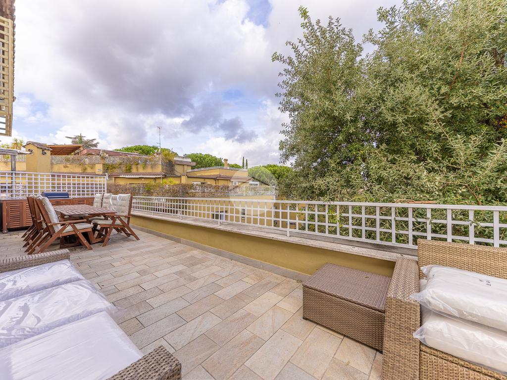 CORTINA D'AMPEZZO - In una delle zone più eleganti e tranquille di Roma Nord, precisamente su Viale Cortina d’Ampezzo, proponiamo in vendita un attico completamente ristrutturato, situato all’interno di una palazzina recentemente rinnovata grazie ai lavori di riqualificazione effettuati con Eco Bonus 110%. Lo stabile si presenta in condizioni impeccabili: sono stati realizzati interventi di efficientamento energetico come il cappotto termico, la nuova caldaia a condensazione, oltre all’installazione di infissi nuovi, che garantiscono un elevato comfort abitativo. L’appartamento si distingue per la sua luminosità e per gli spazi ampi e ben distribuiti. L’ingresso si apre su un salone doppio con camino che, insieme alla sala da pranzo, crea una zona giorno accogliente e perfetta. La cucina, separata e funzionale, è dotata di tutto lo spazio necessario per chi ama cucinare e vivere la casa. La zona notte è composta da tre camere da letto e due bagni, garantendo spazio alle famiglie numerose. Tutti gli ambienti si affacciano su una splendida terrazza perimetrale, ideale per godersi momenti di relax all’aperto e organizzare cene estive ammirando il panorama circostante. A completare la proprietà troviamo un comodo box auto di circa 32 mq e una cantina, perfetti per rispondere a ogni esigenza di spazio. L’attico rappresenta una soluzione ideale per chi desidera vivere in un contesto signorile, circondato dal verde e al tempo stesso vicino a tutti i principali servizi e collegamenti. Un’abitazione pronta da vivere, elegante e confortevole, nel cuore di una delle aree più ambite di Roma.